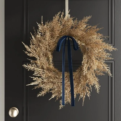 Make your entryway nice and festive with this Metal Christmas Wreath Hanger from Wondershop™. This gorgeous wreath hanger is crafted from iron and finished in a silver color. The over-the-door wreath hanger ensures an easy hanging solution without the need for nails or screws, making it ideal for displaying your favorite wreath throughout the Christmas season.