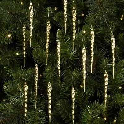 Your tree can help turn any room into a winter wonderland when you decorate it with this 14-Count Glitter Icicle Christmas Ornament Set from Wondershop™. Made from shiny plastic, these icicle ornaments sparkle in the glow of your Christmas lights, and they’re equipped with top hooks for easy hanging from any branch. The solid hue makes them easy to coordinate with a wide variety of ornaments, lights and garlands, and with 14 icicles per pack, you’ll get a good head start on decorating your tree.