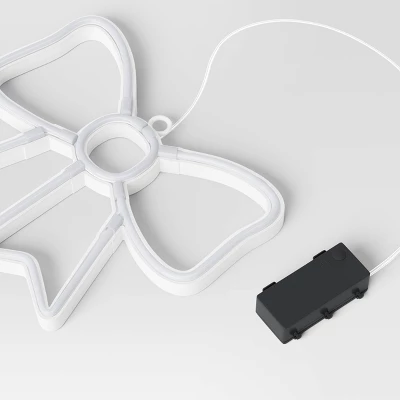 Brighten up your festive display with these LED Neon Bow Sign Christmas Novelty Silhouette Lights from Wondershop™. The novelty silhouette lights feature a neon bow sign frame equipped with 120 LED bulbs in red, casting a cheerful, festive glow. Designed with a top loop for easy display, you can use these neon bow sign lights to decorate your door, windows, or ceiling, as well as arrange them on your front porch or tree to enhance your Christmas party scene.