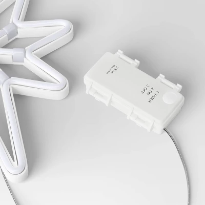 Add ambient glow to your festive decor with this Christmas Faux Neon Warm White Star from Wondershop™. It features a neon frame that’s pre-lit with 112 warm white LED bulbs on a clear wire, casting a brilliant, festive glow. This beautiful seasonal accent comes with a top loop for easy display. Hang this battery-operated star sign on the wall with decorative garland to bring joyful appeal to your Christmas decorations.